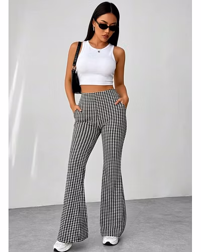 Women's Stretchable High Waist Leopard Side Stripes Flared Bootcut Pants Palazzo for Casual & Activewear