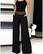 Latest Street Fashion sheer mesh detail with horizontal stripes waistband Wide Leg Pocket Palazzo